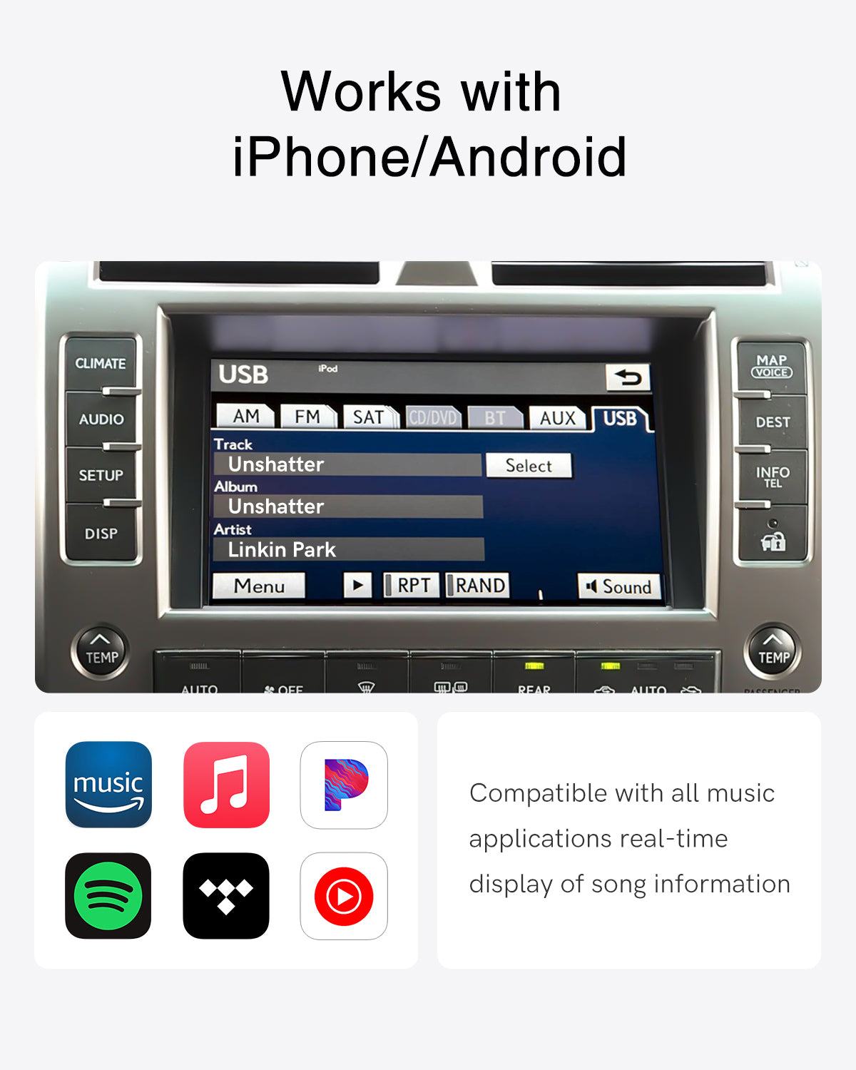 Stay Focused While Driving: This Bluetooth receiver displays real-time music details (artist, song name) on your car’s screen—compatible with both iOS & Android.