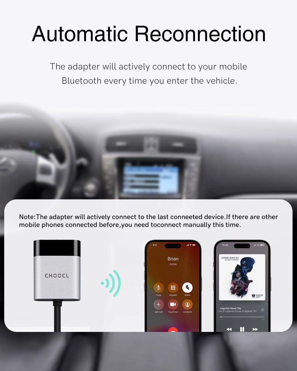 3-Step Quick Setup: Simply plug in, connect via Bluetooth, and start playing music. While optimized for audio streaming (no calls), you can still pair both your car’s Bluetooth (for calls) and this adapter (for music) at the same time for complete dual functionality.