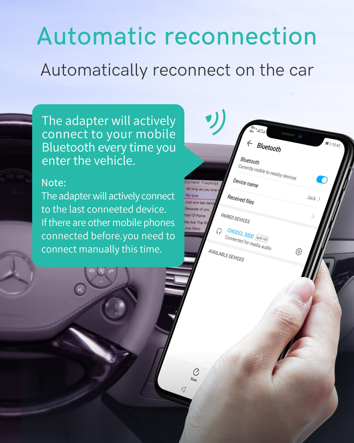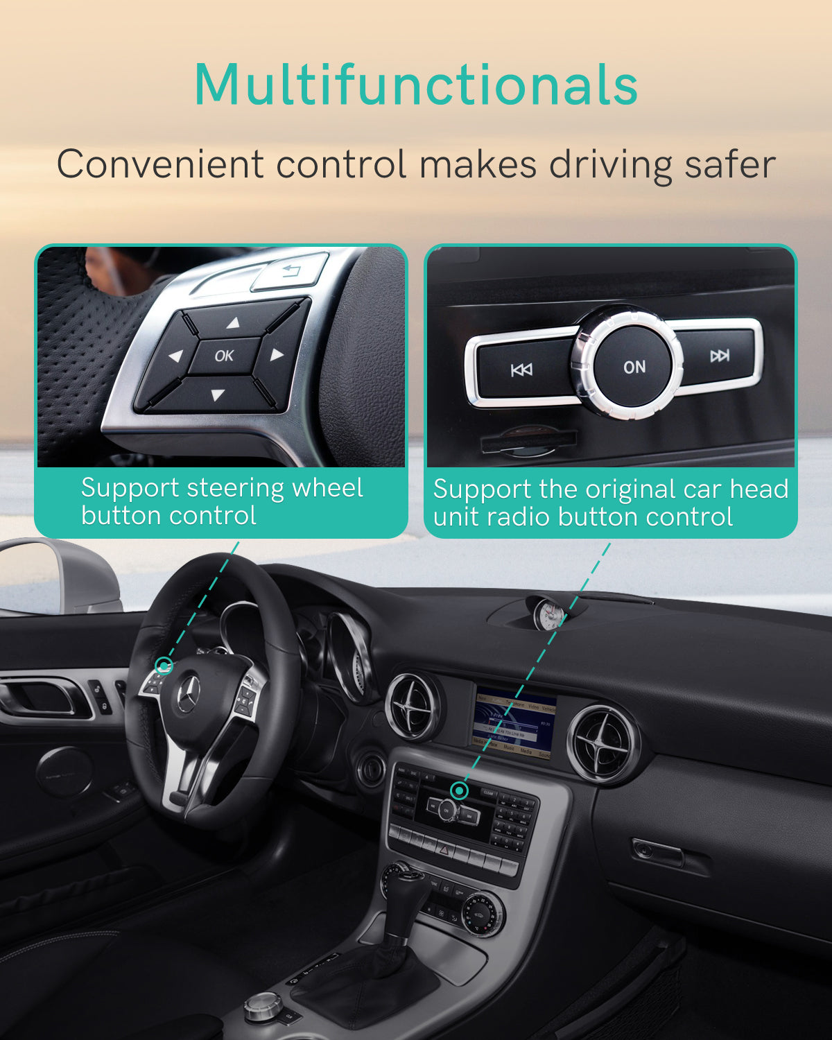 Control Music with Built-In Steering Wheel & Dashboard Buttons – Skip tracks seamlessly using your car’s existing controls. Enjoy hands-free music management for safer, distraction-free driving.
