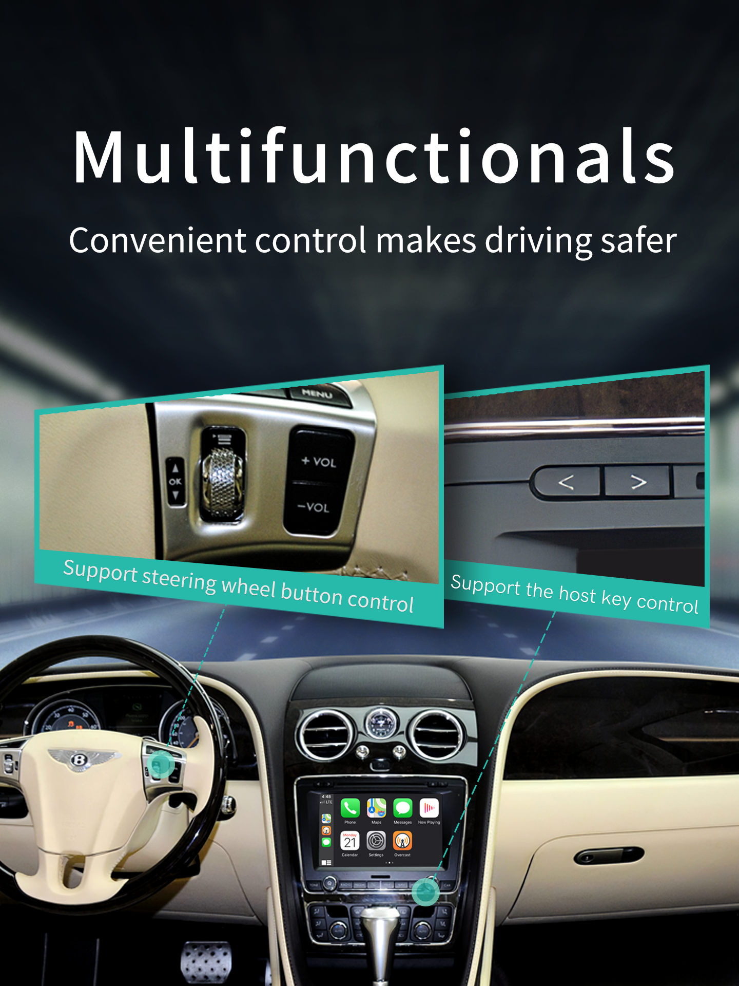 Pre-purchase Notice: Our wireless Carplay retrofit box is compatible with Bentley Flying Spur(2012-2017),Continental(2011-2019),Mulsanne (2011-2019). If you are not sure about your car system, please check the pictures on our website or ask us.