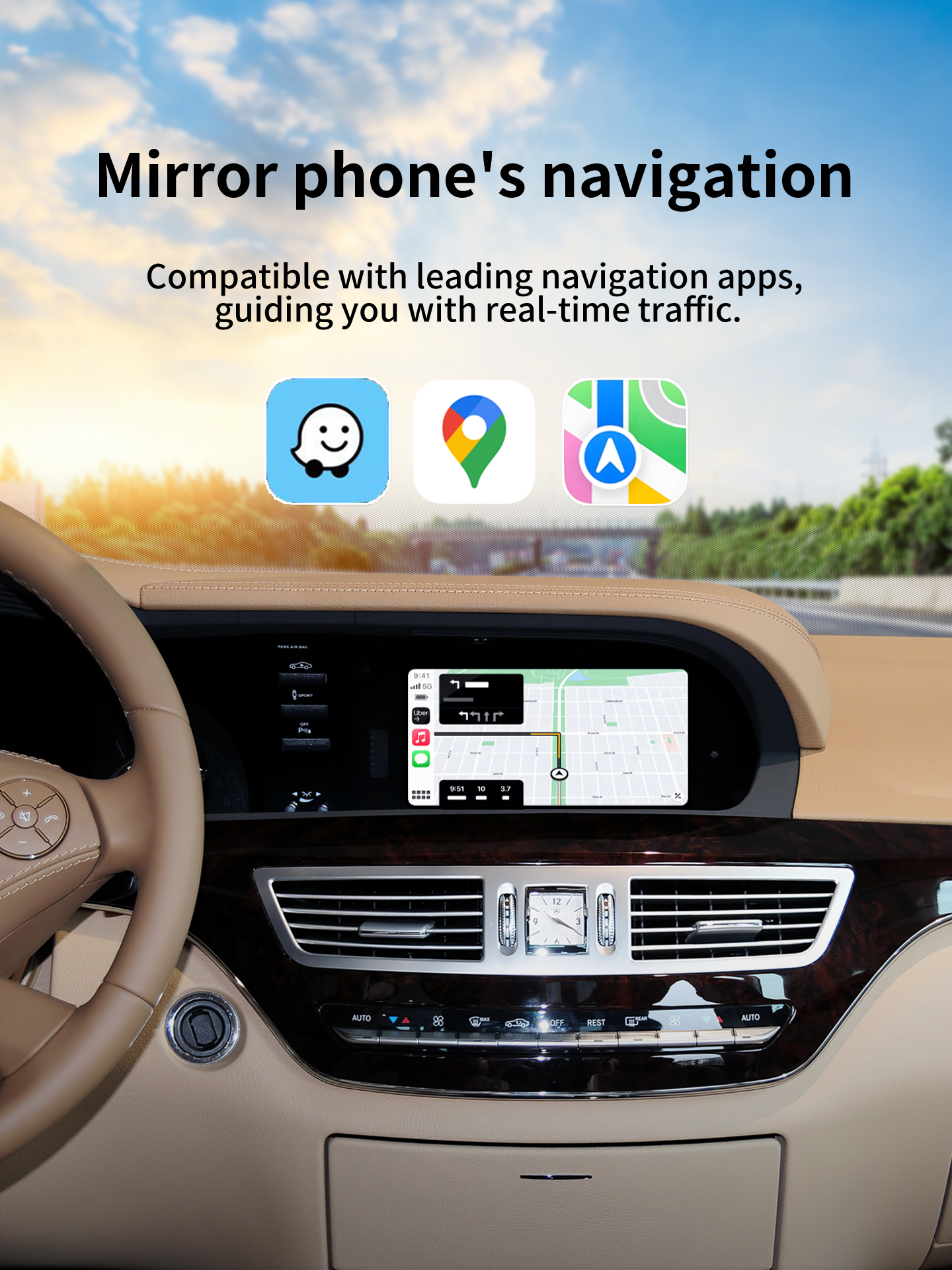 More Functions: Supports wireless/wired CarPlay, MirrorLink, photo viewing, navigation, voice assistant activation, and playback via iTunes, Apple Music, or other apps.